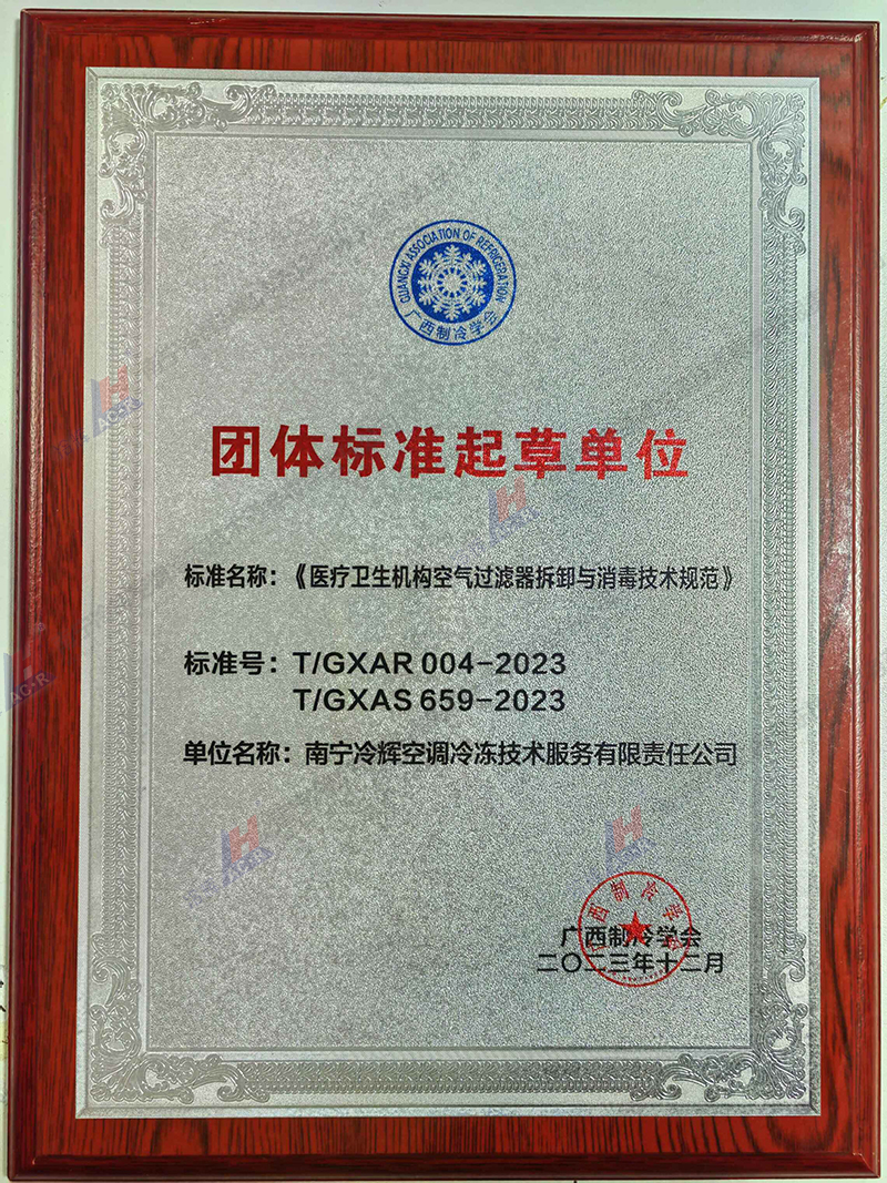“团体标准起草单位”---《医疗卫生机构空气过滤器拆卸与消毒技术规范》